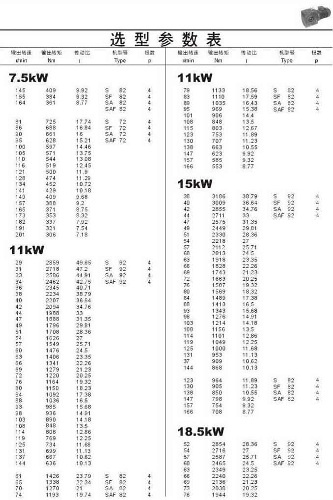 選型參數表7.5kW(續),11kW,15kW,18.5kW